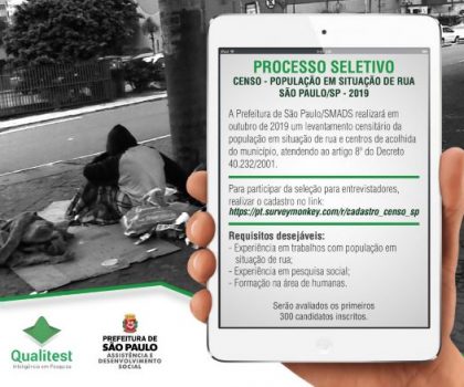 PROCESSO SELETIVO: CENSO – POPULAÇÃO EM SITUAÇÃO DE RUA SÃO PAULO/SP – 2019